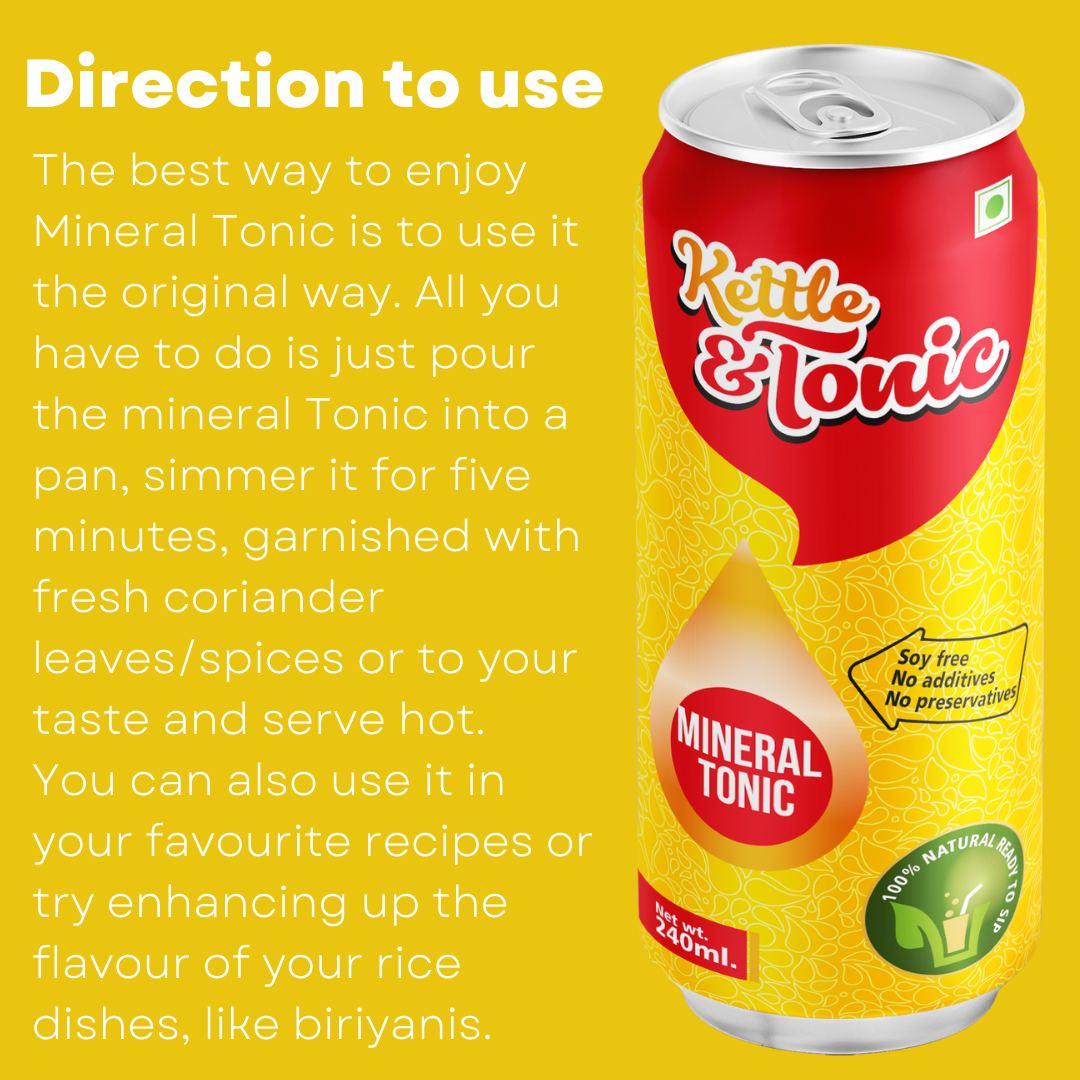 Mineral Tonic is a flavourful vegetable Broth prepared by simmering different vegetables in purified water along with exotic herbs and spices until the flavour, aroma, colour and its nutritive goodness is extracted. It has been used for ages as a traditional Indian method of supporting the complete body and restoring vitality from the inside out.